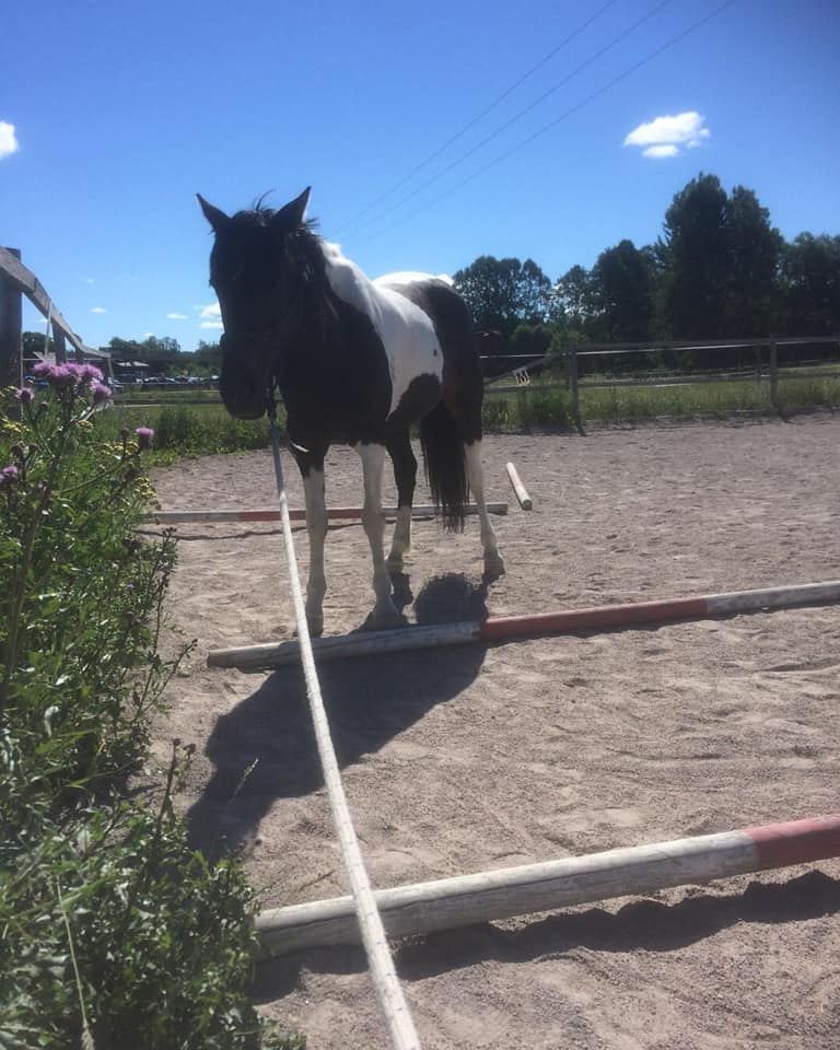 Denna dam har förutom problem med bommar, vissa klaustrofobiska bekymmer eller ja har haft för just nu har vi inga problem men tidigare så slängde hon sig genom dörröppningar, fick panik och lade sig i hästtransporten. Öronen bakut, lite tandagnissel och ett helsike att valla i hagen haha. Men ja en paus och sen mycket tålamod så har det blivit bättre...